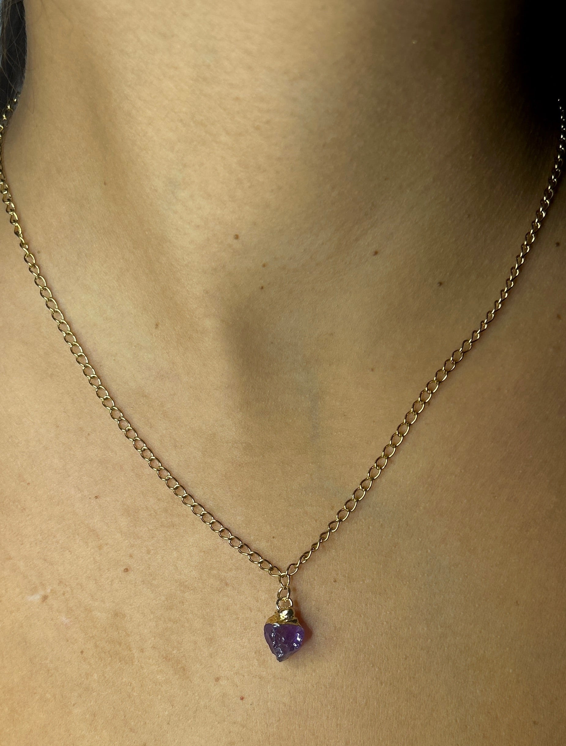 Lasciati avvolgere dall’energia mistica dell’Ametista, la pietra che richiama la spiritualità e la calma interiore. Con le sue intense sfumature viola, questa collana non è solo un gioiello, ma un amuleto che dona equilibrio, intuizione e serenità.