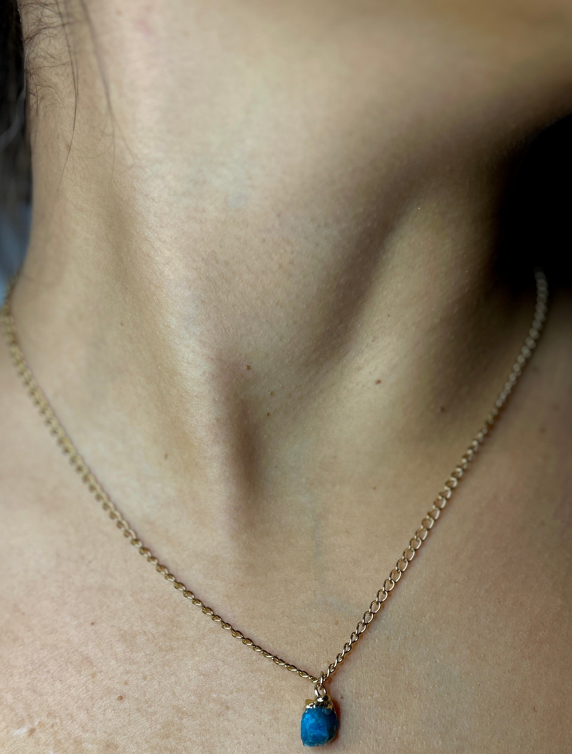 Lasciati avvolgere dall’energia vibrante dell’Apatite Blu, la pietra che richiama il mare profondo e la sua forza rigenerante. Con le sue sfumature cangianti, dall’azzurro chiaro al blu intenso, questa collana non è solo un gioiello, ma un amuleto che dona chiarezza interiore, ispirazione e autenticità.