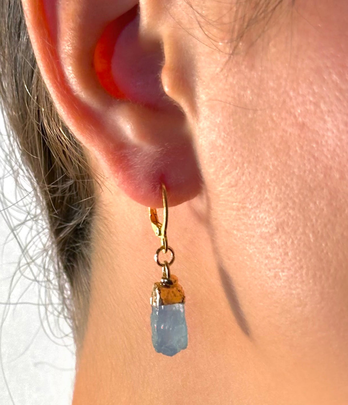 Gli orecchini in Acquamarina custodiscono la freschezza del mare e la leggerezza del cielo. Pietra simbolo di protezione e chiarezza, aiuta a calmare la mente, sciogliere le tensioni e ritrovare equilibrio interiore.