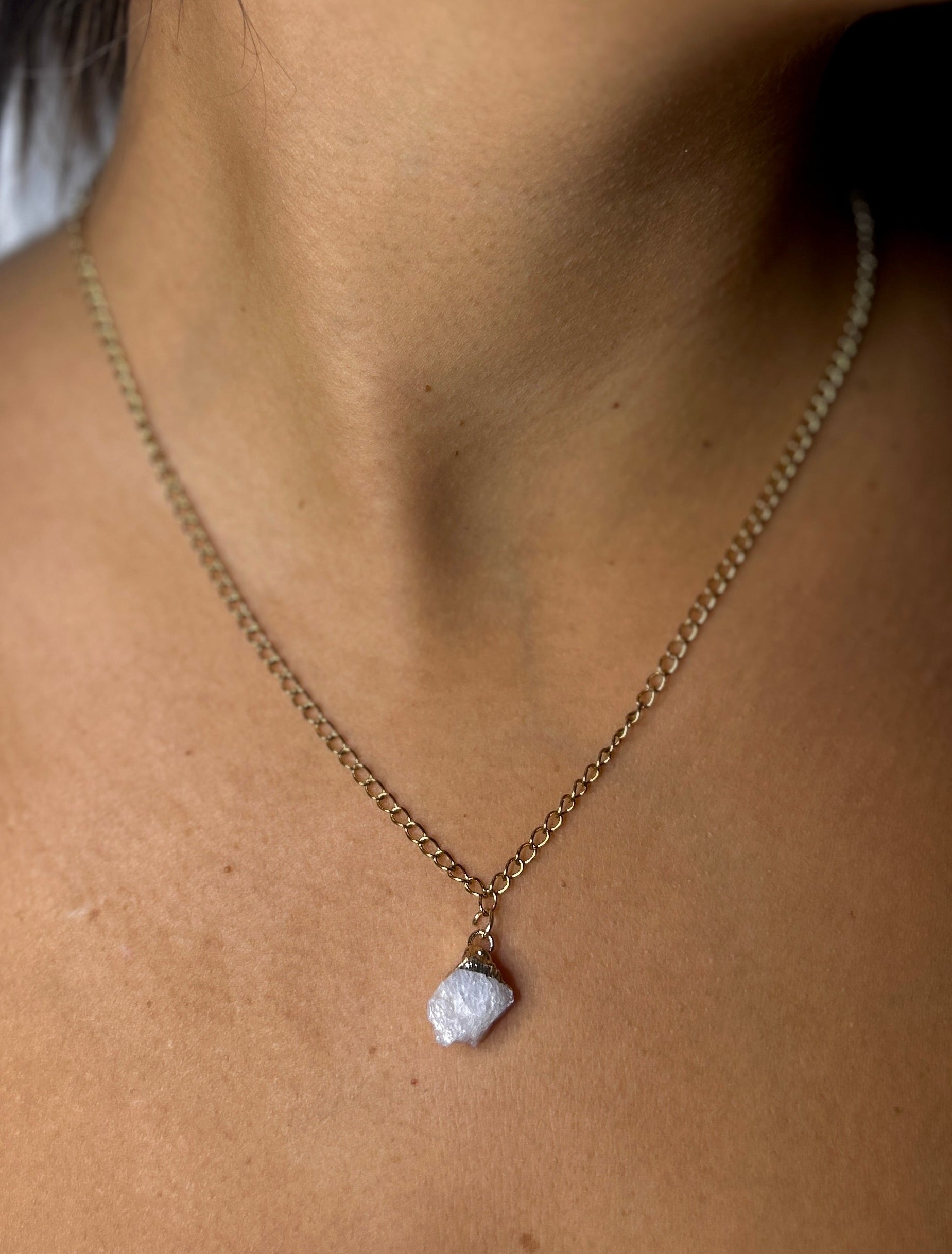 Lasciati illuminare dalla purezza della pietra della luna , la pietra che richiama la luce e l’energia vitale dell’universo. Con le sue sfumature lattiginose e traslucide, questo ciondolo non è solo un gioiello, ma un amuleto di equilibrio, chiarezza e protezione.