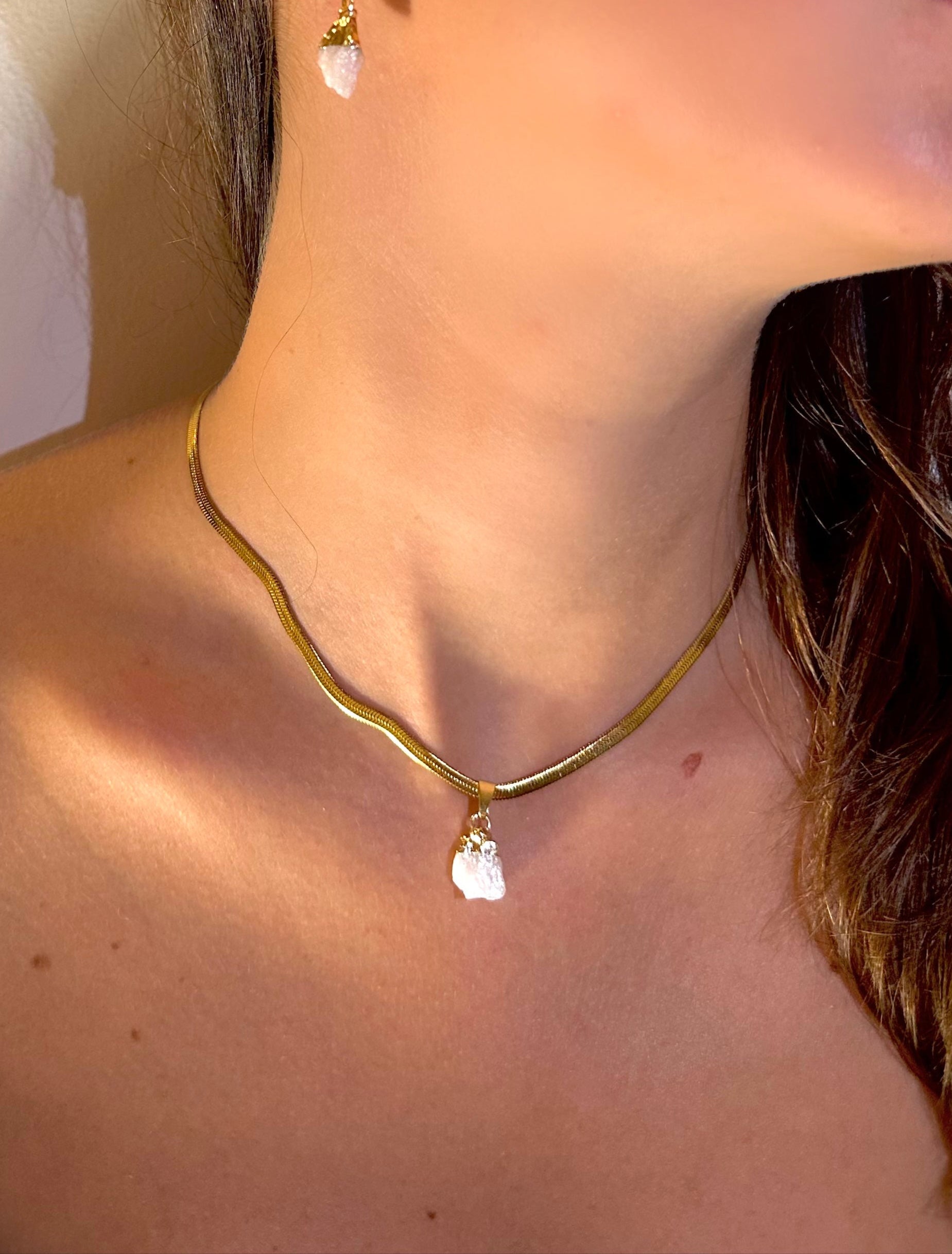 Lasciati illuminare dalla purezza della pietra della luna , la pietra che richiama la luce e l’energia vitale dell’universo. Con le sue sfumature lattiginose e traslucide, questo ciondolo non è solo un gioiello, ma un amuleto di equilibrio, chiarezza e protezione.